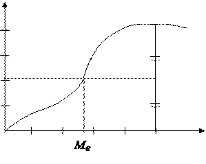 Медиану можно определить графически. Для этого строится кумулята. Для определения Ме высоту наибольшей ординаты делят пополам. Через полученную точку проводятся прямую, параллельную оси абсцисс до пересечения ее с кумулятой. Абсцисса точки пересечения и является Ме.