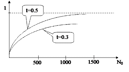 Рисунок 18 - Зависимость модуля коэффициента отражения на центральной частоте от количества отражающих элементов при e=0.004