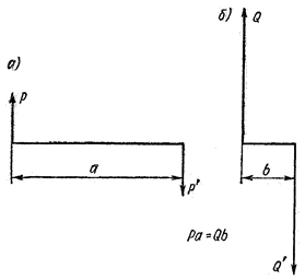 Рис. 12 Если, изменив величину сил и плечо новой пары, мы сохраним равенство их моментов М1= М2, или -Pa = -Qb, то состояние тела от такой замены не нарушится. Итак, вместо заданной пары