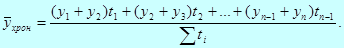 б) для интервального ряда с разными промежутками времени между уровнями используется формула средней арифметической взвешенной, где в качестве весовых коэффициентов используется продолжительность интервалов времени между уровнями:
