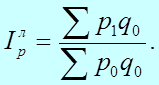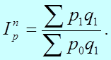 Индекс цен Ласпейреса показывает, во сколько раз товары базисного периода подорожали или подешевели в результате изменения цен на них в отчетном периоде. Эти особенности индекса Ласпейреса обусловливают его применение при прогнозировании объема товарооборота, в связи с намечаемыми изменениями цен на товары в предстоящем периоде. В 1874 г. немецкий экономист Г. Пааше впервые предложил агрегатный индекс цен с отчетными весами. Формула этого индекса выглядит следующим образом: