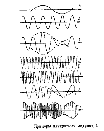 Для повышения помехоустойчивости передачи иногда АМ – сообщение дополнительно модулирует по частоте. Возникает двойная модуляция АМ- ЧМ. При этом сначала сообщением модулируется по амплитуде первый переносчик, который называется поднесущей. Далее АМ – сигнал модулирует второй переносчик, или несущую, в результате чего возникает сигнал, модулированной по частоте. Иногда применяется модуляция ЧМ- АМ, при которой помехоустойчивость обеспечивается ЧМ, а экономия полосы частот АМ. При этом поднесущая модулируется по частоте. а затем ЧМ – сигнал модулирует несущую по амплитуде. По такому же принципу образуется и двойная модуляция ЧМ- ЧМ.