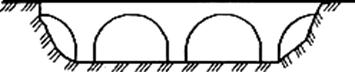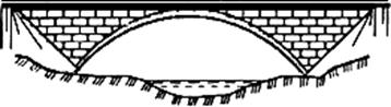 Рис.22. Арочная система – в которой главные несущие элементы ПС-арки (криволинейные брусья) – под действием вертикальных сил работают на изгиб и сжатие и передают на опоры наклонное давление, вызывающее опорные реакции (распор). По статической схеме арочные железобетонные мосты можно разделить на распорные и безраспорные. В распорных арочных системах арки или своды опираются пятами на опоры и передают им вертикальные давления и распор, в безраспорных – распор воспринимает затяжка, благодаря чему пролетное строение передает опорам лишь вертикальные давления.