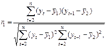 В первом случае усредняются значения ряда, начиная со второго до последнего, во втором случае – значения ряда с первого до предпоследнего. Формулу (3) можно представить как формулу выборочного коэффициента корреляции:
