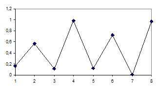 Это значение свидетельствует о слабой зависимости текущих уровней ряда от непосредственно им предшествующих. Однако из графика очевидно наличие возрастающей тенденции уровней ряда, на которую накладываются циклические колебания. Продолжая аналогичные расчеты для второго, третьего и т.д. порядков, получим автокорреляционную функцию, значения которой сведем в таблицу и построим по ней коррелограмму: