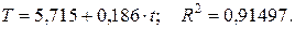 Шаг 4. Определим трендовую компоненту данной модели. Для этого проведем выравнивание ряда (Т+Е) с помощью линейного тренда: