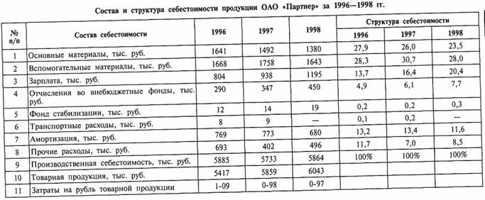 Таблица 9 Бухгалтерский баланс ОАО «Партнер» в укрупненных показателях на 1 января 1999 – 2001 гг. (млн руб.)