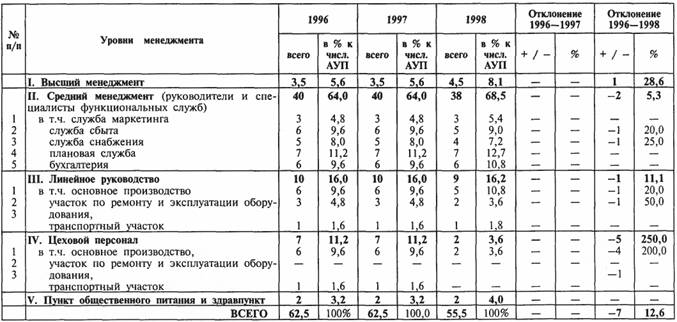Таблица 13 Распределение среднесписочной численности административно-управленческого персонала по уровням менеджмента согласно штатному расписанию)
