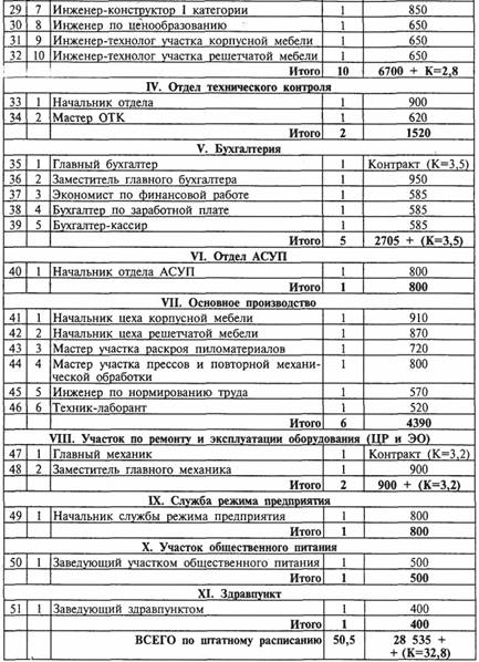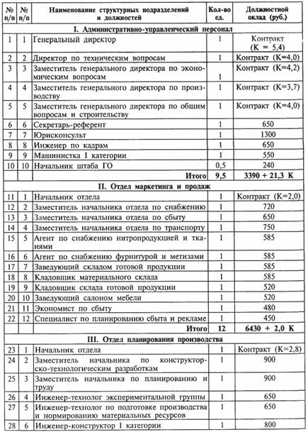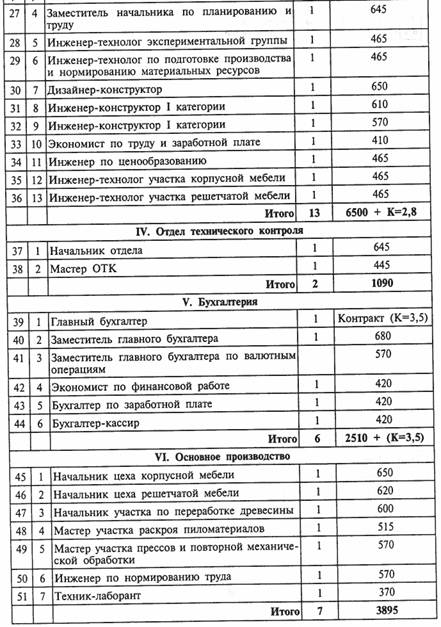 Таблица 15 Штатное расписание руководителей, специалистов и служащих ОАО «Партнер»