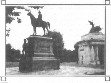 Monument to Wellington and Wellington Arch. Hyde park Corner. London Duke of Wellington (1769-1852) was a successful military leader famous for defeating Napoleon at the Battle of Waterloo in 1815. He was called "the Iron Duke". In 1828 Wellington became Prime Minister.