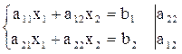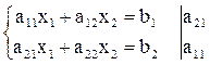 называется системой двух линейных алгебраических уравнений с двумя неизвестными. Числа a 11, a 12, a 21, a 22 называются коэффициентами при неизвестных; x 1, x 2 – неизвестные; b 1, b 2 – свободные члены.