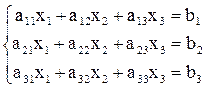 называется системой трех линейных алгебраических уравнений с тремя неизвестными. Числа a11, … называются коэффициентами при неизвестных; x1, … – неизвестные; b1, … – свободные члены.