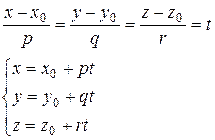 t-параметры (может принимать любые значения от -∞ до +∞, каждое соответствует некоторому значению точки прямой)