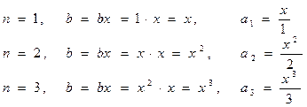 при n = 1 рекуррентная формула дает а1 = 0, что исключает дальнейшие вычисления. В этом случае члены ряда следует вычислять по формуле , где b ×x, т.е. b вычисляется накоплением х.