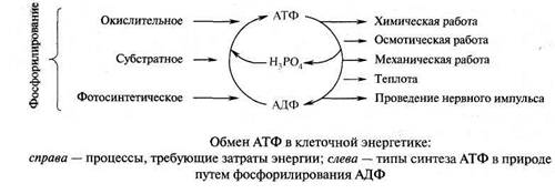 В биоэнергетике живых организмов имеют значение 2 основных момента: - химическая энергия запасается путем образования АТФ, сопряженного с экзергоническими катаболическими реакциями окисления органических субстратов, - химическая энергия утилизируется путем расщепления АТФ, сопряженного с эндергоническими реакциями анаболизма и другими процессами, требующими затраты энергии.