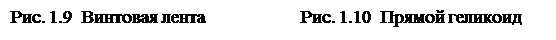 Винтовые поверхности образуются при винтовом движении произвольной линии. Наибольшее применение в технике имеют линейчатые винтовые поверхности (геликоиды), образованные винтовым движением отрезка прямой. На рис. 1.9 показана винтовая цилиндрическая лента шириной b. На образующей цилиндра можно отметить любое количество точек перемещающихся вдоль нее с одинаковой скоростью. При вращении образующей все точки опишут гелисы одинакового хода. Производящие гелисы, образованные точками А и В, расположены на равном расстоянии b. Такие гелисы лежат в основе образования многозаходных резьб.