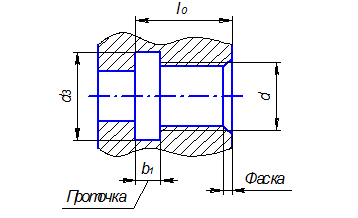Для изготовления резьбы полного профиля в отверстии делают проточку шириной b1, диаметр d3, которой больше номинального диаметра резьбы d (рис. 2.8). Обычно до нарезания резьбы на конце стержня и в отверстии делают фаску предохраняющую крайние витки от повреждений и являющуюся направляющей в резьбовом соединении (рис. 2.6 – 2.8). Размер l0 показывает положение проточки от торца детали (рис. 2.8).