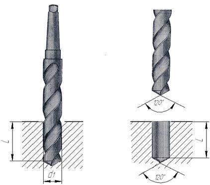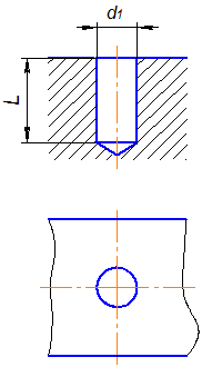 Диаметр сверла должен быть выбран из таблицы стандартов в зависимости от нарезаемой в дальнейшем резьбы. Диаметр отверстия d1 равен диаметру сверла, которым это отверстие высверливается, L – глубина сверления отверстия.