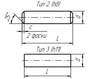 Штифты Штифтовые соединения получили широкое распространение в промышленности и применяются для фиксирования соединяемых деталей относительно друг друга. Штифты устанавливаются в совместно обработанные (развёрнутые) отверстия обеих деталей. Штифты позволяют при необходимости разъединения деталей повторную сборку с сохранением точности их расположения. Штифты подразделяют на цилиндрические и конические (< 1:50), с наружной или внутренней резьбой на их концах или без неё, с насечкой на посадочных поверхностях или без неё, пружинные и т.п. Конические штифтовые соединения проще в изготовлении и допускают неоднократную разборку и сборку изделия. В этих случаях штифты в одну из деталей устанавливают с натягом, в другую- с зазором. Основным типом является цилиндрические штифты (ГОСТ 3128- 70*), которые служат для крепления на осях и валах тел вращения и для фиксирования взаимного положение детали на плоскости или по цилиндру (рис. 5.23).