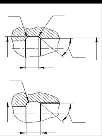 Диаметры гладких отверстий больше диаметра стержня крепежной детали, что позволяет ей свободно пройти через отверстие. Диаметры проходных (сквозных) отверстий под болты, винты, шпильки приведены в таблице 6.1, а рекомендации по выбору – в таблице 6.2ГОСТ 12876-70* регламентирует запас нарезки, глубина сверления и другие параметры резьбовых деталей и соединений. Некоторые рекомендации ГОСТа 12876-70* приведены в таблицах 6.3, 6.6. В случае, когда по условиям конструкции узла номинальные размеры диаметра отверстия и диаметра стержня болта равны, т.е. в соединении без зазора, необходимо устранить контакт кромки отверстия с галтелью под головкой болта или винта, как это показано на рис. 6.4. Размеры такого соединения регламентированы ГОСТ 24670-81. Размеры сквозных квадратных и продолговатых отверстий регламентированы ГОСТ 16030-70*. При конструировании разъемных резьбовых соединений встречаются случаи, когда сквозное отверстие в притягиваемой детали необходимо выполнить квадратным или продолговатым (рис. 6.5).