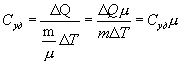 Удельной теплоемкостью называется величина, числено равная теплоте, которую надо сообщить единице массы тела для повышения его температуры на один Кельвин: