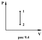откуда следует, что теплоемкость есть функция процесса, т.е. теплоемкость системы зависит от того каким образом система переходит из одного состояния в другое. Вообще говоря, таких процессов может быть сколько угодно, фактически же используются чаще всего теплоемкость при р=const(Cp) и при V=const(CV). 9.6 Изохорический процесс (V=const) Первое начало термодинамики