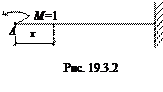 Знак «плюс» показывает, что направление прогиба y и силы F совпадают между собой (прогиб и сила направлены вниз). Если бы перемещение получилось со знаком «минус», то это означало бы, что его направление противоположно направлению соответствующей силы. Пример 19.2.2. Определить угол поворота сечения А (рис. 19.2.2), если EIz = const. Решение. В рассматриваемом сечении нет силы, соответствующей искомому перемещению, поэтому необходимо в сечении А приложить сосредоточенный момент М = 0 (рис. 19.2.3), при этом направление момента соответствует предполагаемому направлению угла поворота сечения.