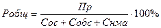 где Пр – прибыль организации, руб.; Сос - среднегодовая стоимость основных средств организации, руб.; Собс - среднегодовая стоимость оборотных средств, руб.; Снма – среднегодовая стоимость нематериальных активов, руб. В качестве прибыли организации в данной формуле может быть использована прибыль к налогообложению, чистая прибыль. Рентабельность продукции рассчитывают по формуле