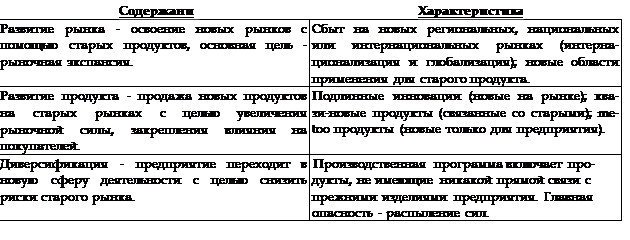Рис. 4.7. Матрица «Продукт - рынок» Таблица 4.14 Краткая характеристика матрицы Ансоффа ___________ Содержание ___________________ Характеристика _______ Обработка рынка - усиление мероприятий Увеличение объема продаж и потребления,