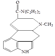 Например, у буфотенина значения R = OH, R1 = H; Все буфотенины обладают выраженным галлюциногенным и парализующим нервную систему действием. Особенно же сильный галлюциноген – ароматический амин - диэтиламид лизергиновой кислоты строения: