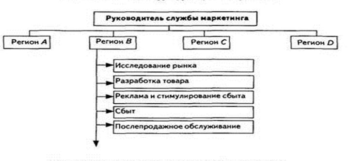 В последнее время товарная ориентация маркетинговых структур получает все большее развитие. Это объясняется ускорением обновления товаров, предлагаемых предприятием рынку. Обострение конкурентной борьбы вынуждает производителей сокращать срок жизненного цикла товаров, с одной стороны, и разрабатывать для предложения рынку принципиально новые модели товаров — с другой. Все это обусловливает необходимость сосредоточения внимания маркетинговых служб предприятия на потребительных свойствах товаров, откликах покупателей, сбытовых процедурах, действиях конкурентов и т.п., что делает товарную ориентацию маркетинговых структур в ряде случаев просто незаменимой. В функциональные обязанности управляющего маркетингом по тому или иному товару, которого с недавних времен стали называть брэнд-менеджером (или управляющим брэнда), обычно включается решение следующих задач: координация деятельности всех подразделений предприятия (в том числе и производственных), влияющих на маркетинг курируемого им товара; • развитие потребительных свойств товара; • снятие с производства морально устаревших товаров и выведение на рынок новых; формирование и развитие брэнда; • изучение деятельности конкурентов и контроль цен на рынке; • прогнозирование динамики рынка курируемого им товара; • составление плана маркетинга по данному товару. Ясно, что функциональная область управляющего по товару может быть дополнена, изменена, скорректирована — это определяется спецификой товара и (или) рынка. Главное здесь — полный охват одним подразделением службы маркетинга всех задач по производству и продвижению на рынок конкретного товара. Именно это и обеспечивает высокое качество деятельности товарных структур. Товарная структура является гибкой. Она способна быстро реагировать на запросы рынка, но требует больших затрат труда узких специалистов из-за дублирования функций. Вопрос 5 Рыночная структура службы маркетинга Довольно часто, в целях увеличения сбыта, фирма вынуждена вести свою деятельность на нескольких рынках, где наблюдаются различные потребительские предпочтения, обусловленные сложившимися традициями, обычаями, и требуются в связи с этим особые формы продвижения товара. В таких случаях целесообразна рыночная ориентация маркетинговой службы предприятия. В этом случае вводятся должности управляющих по рынкам (по аналогии с товарной структурой), что позволяет основное внимание сосредоточить на нуждах, потребностях и запросах покупателей конкретных рынков или их сегментов. По каждому рынку разрабатывается соответствующая его специфике стратегия маркетинга, ориентированная на как можно более полный учет потребительных свойств товара, форм его продвижения, осознанных и неосознанных ожиданий покупателей. Все это делает структуры, ориентированные на рынки, более эффективными. Вопрос 6. Региональная структура службы маркетинга Если предприятие выпускает продукцию, которая находит сбыт в нескольких регионах, отличающихся друг от друга природно-климатическими условиями, образом жизни людей и т.п., есть смысл ориентировать структуру его маркетинговой службы на регионы. Это позволит учесть в маркетинговых стратегиях специфику потребления одного и того же товара на разных территориях и отразить ее в потребительных свойст