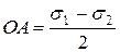 Для площадки сдвига закон прочности Кулона–Мора имеет математическое выражение, уже известное нам из курса "Инженерные изыскания в строительстве": t = с + s × tg j, (2.1) где с – сцепление, параметр, соответствующий прочности грунта при нулевом значении нормального напряжения на площадке сдвига; Примечание. Здесь под эффективными напряжениями следует понимать разницу между полными напряжениями и избыточным (по сравнению с атмосферным) давлением в поровой воде. Избыточное давление в поровой воде называют нейтральными напряжениями. Сумма эффективных и нейтральных напряжений всегда равна полному напряжению. Ниже (см. лекцию № 8) будет показано, что в условиях завершенной фильтрационной консолидации нейтральные напряжения равны нулю, а эффективные напряжения равны полным напряжениям. Таким образом, наличие порового давления снижает прочность грунта, а опыты по определению прочностных характеристик грунта должны проводиться по дренированно-консолидированной схеме. Формуле (2.1) на графике (рис. 2.3) соответствует прямая, наклоненная к оси нормальных напряжений s под углом внутреннего трения грунта j и отсекающая на оси касательных напряжений t отрезок, численно равный сцеплению грунта с. Указанная прямая является огибающей предельных кругов Мора, соответствующих прочности грунта при различных уровнях нормальных напряжений на площадке сдвига. График по формуле (2.1) называют также графиком прочности грунта, диаграммой прочности грунта или паспортом прочности грунта. В соответствии с формулой (2.1) прочность грунта неограниченно возрастает при неограниченном увеличении нормальных напряжений на площадке сдвига. Последнее не согласуется с экспериментальными данными. Это объясняется тем, что при определенном уровне сжимающих напряжений в грунте происходят микроразрушения на контактах минеральных частиц, сдерживающие рост сил внутреннего трения. При очень высоком уровне сжимающих напряжений происходит разрушение материала минеральных частиц, и график прочности ниспадает до пересечения с осью нормальных напряжений. Однако уровень таких напряжений значительно превосходит уровень напряжений, действующих в основании фундаментов вплоть до исчерпания несущей способности основания. В связи с этим в практических расчетах оснований используют линейное уравнение прочности (2.1). Уравнение (2.1) может быть использовано только в том случае, если заранее известна площадка сдвига, например, при плоском сдвиге фундамента относительно основания. В большинстве же случаев площадка сдвига заранее неизвестна. Поэтому представляют практический интерес другие формы записи уравнения прочности (2.1). Уравнения прочности в главных напряжениях. Предельному состоянию грунта в точке А на графике прочности соответствует круг Мора, касающийся графика прочности в точке А, с главными напряжениями s1 и s2 (s1>s2). Как известно, центр круга Мора отстоит от начала осей координат на расстоянии (s1+s2) / 2, а его радиус равен (s1-s2) / 2. Уравнение прочности в главных напряжениях вытекает из следующих преобразований: