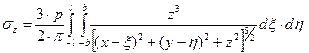 В формуле (3.8) учтено, что радиус-вектор R соединяет точку с координатами x, y, z, в которой определяется напряжение, и точку с координатами x, h, 0, в которой действует элементарная сила. Для определения напряжения sz в точке с координатами x, y, z от всей загруженной площади проинтегрируем выражение (3.8) по загруженной площади: