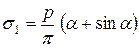 Интеграл по формуле (3.9) имеет замкнутое аналитическое решение в тригонометрических функциях, впервые полученное в 1935 г. А. Лявом. Наиболее простые выражения для напряжений получаются по вертикалям в центральном сечении загруженной площади и по угловым точкам: sz = a × p;