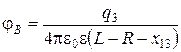 3. Поместим внутрь шара А (точка А 3) заряд q 3 = - q 2 R /(L - x 02)= q 1/(K 2-1), являющийся изображением заряда q 1 в поверхности шара В. Расстояние от точки А 3 до центра шара А равно: х 13 = R 2/(L - х 02)= R × К /(K 2-1)= L /(K 2-1). Потенциал j А приобретает при этом своё первоначальное значение, а потенциал j B становится равным:
