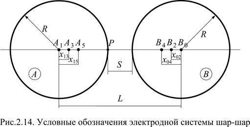 При измерениях напряжений шаровыми разрядниками величина К изменяется в пределах от 2,1 до 3,5 Если обозначить расстояние между ближайшими точками шаров А и В символом S (S = L -2 R), то это изменение К соответствует изменению отношения S /2 R = 0,05¸0,75. Шаг 3 повторяет в некоторой степени шаг 1. Однако, заряд q 3 меньше заряда q 1 в К 2-1 раз (в 5.76¸11.25 раза). 4. Чтобы сделать потенциал шара В равным нулю в него следует поместить заряд–изображение q 4= - q 3× R /(L - x 13)= - q 1/(K (K 2-2)). Расстояние