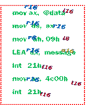 СОГЛАСОВАННОСТЬ ОПЕРАНДОВ ПО РАЗРЯДНОСТИ Допустимы следующие сочетания: "r8, m8", "r16, m16", "r32, m32". Например, сочетание "r8, m16" недопустимо.
