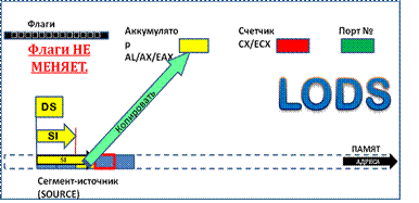 LODS адрес_источника (LOaD from String) — загрузить из цепочки;