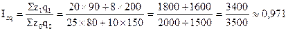 где z0, z1 - себестоимость каждого вида продукции (товара) соответственно в базисном (ххх1) и отчетном (ххх2) годах (индексируемый показатель); q1 - объем каждого вида продукции (товара) в отчетном периоде: