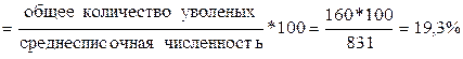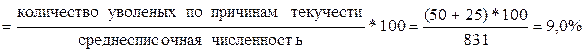 где общее количество уволенных складывается из числа уволенных по причинам необходимого увольнения и по причинам текучести. 3. Коэффициент текучести =