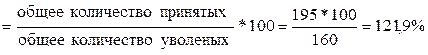 где причинами текучести являются увольнения по собственному желанию работников, за прогул и другие нарушения трудовой дисциплины 4. Коэффициент соотношения принятых к выбывшим =