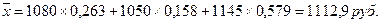В отдельных случаях веса могут быть представлены не абсолютными величинами, а относительными (в процентах или долях единицы). Так, в приведенном выше примере количество проданных в ходе каждой сделки акций соответственно составляет 26,3% (0,263); 15,8% (0,158); и 57,9% (0,579) от их общего числа. Тогда, с учетом несложного преобразования формулы (5.4) получим: