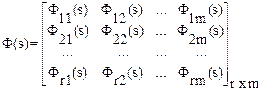 прямоугольная матрица коэффициентов системы (размерность r´ l, где l - число возмущающих воздействий), связывающая возмущающее воздействие с управляемой величиной. Подвергнув уравнение (4.9) преобразованию по Лапласу, получим матричное операторное уравнение, решение которого определяет изображение управляемой величины