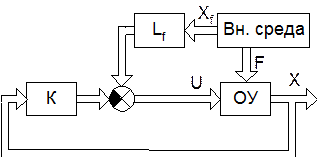 Эффективная компенсация ошибок, вызванных возмущающим воздействием F и изменениями задания X* достигается использованием комбинированного управления (рис. 10.8)