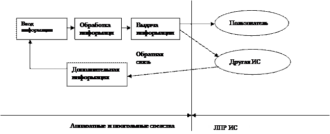 Информационная система (ИС) – взаимосвязанная совокупность средств, методов и персонала используемых для хранения, обработки и выдачи информации в интересах достижения поставленной цели. В ИС протекают процессы, которые реализуются с помощью информационных технологий. Процессы состоят из следующих этапов: 1. Ввод исходной информации 2. Обработка информации 3. Выдача информации Информация поступает либо в другую информационную систему, либо пользователю.