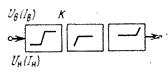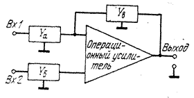 Электрическая принципиальная схема одного из типовых операционных усилителей приведена на рис. 1.15 [1.54]. Она содержит входной и выходной каскады, а также каскад обратной связи; схема собрала на 4 транзисторах p—n—p и n—p—n -типа и 15 резисторах. Как и дифференциальный усилитель, операционный усилитель имеет два высокоомных симметричных входа, на которые подается разность напряжений сигналов, и низкоомный несимметричный выход. ОУ обладает высоким коэффициентом усиления по току и сильной отрицательной обратной связью. Сигнал по первому входу инвертируется на выходе, а по второму входу не инвертируется. В целях исключения самовозбуждения на высоких частотах к клеммам 4,5 и 6 подключаются внешние развязывающие RC-фильтры Диапазон рабочих температур усилителя —55°...+125°С. Коэффициент усиления 100, входное предельное напряжение Uвх ≈ 5 мв, входное сопротивление Rвх = 900 ком, температурный дрейф нуля примерно 10 мкв/°C Из точных аналоговых преобразований сигнала, которые можно выполнять с помощью операционного усилителя, в настоящее время достаточно хорошо осуществляется фильтрация сигнала [1.52, 1.53]. Структурная схема так называемых активных фильтров приведена на рис. 1.16. Она содержит частотно-избирательные элементы в цепи обратной связи операционного усилителя и перед каждым из его входов. В качестве этих элементов можно использовать емкости и индуктивности, но лучше всего применять RC-структуры. Путем подбора параметров этих структур можно реализовать почти любую функцию передачи, т. е. построить фильтр практически с любой характеристикой.