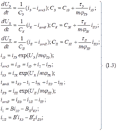 Эквивалентная схема p—n—p-транзистора приведена на рис. 1.21. Этой схеме соответствует следующая система дифференциальных уравнений: