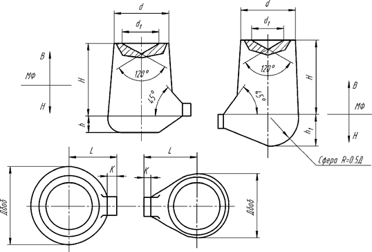 Примечание. Нижние и промежуточные значения Дп/δо относятся к случаям приме- нения прибылей с отношением размеров L п/Дп≥2, а также, если прибыли доливаются свер- ху. При шаровой форме прибыли применяется Нп/Дп=1.