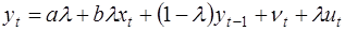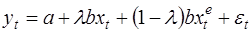 т.е. в форме взвешенного среднего. Чем больше λ, тем быстрее идет корректировка. При λ =1 полная корректировка происходит за один период. При λ =0 корректировка не происходит совсем. Подставим (36) в (38), получим:
