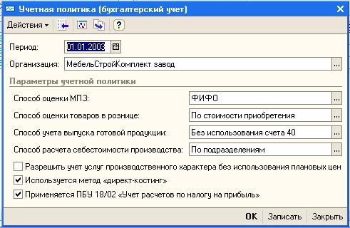 Рис. 2 Настройка учетной политики для целей бухгалтерского учета